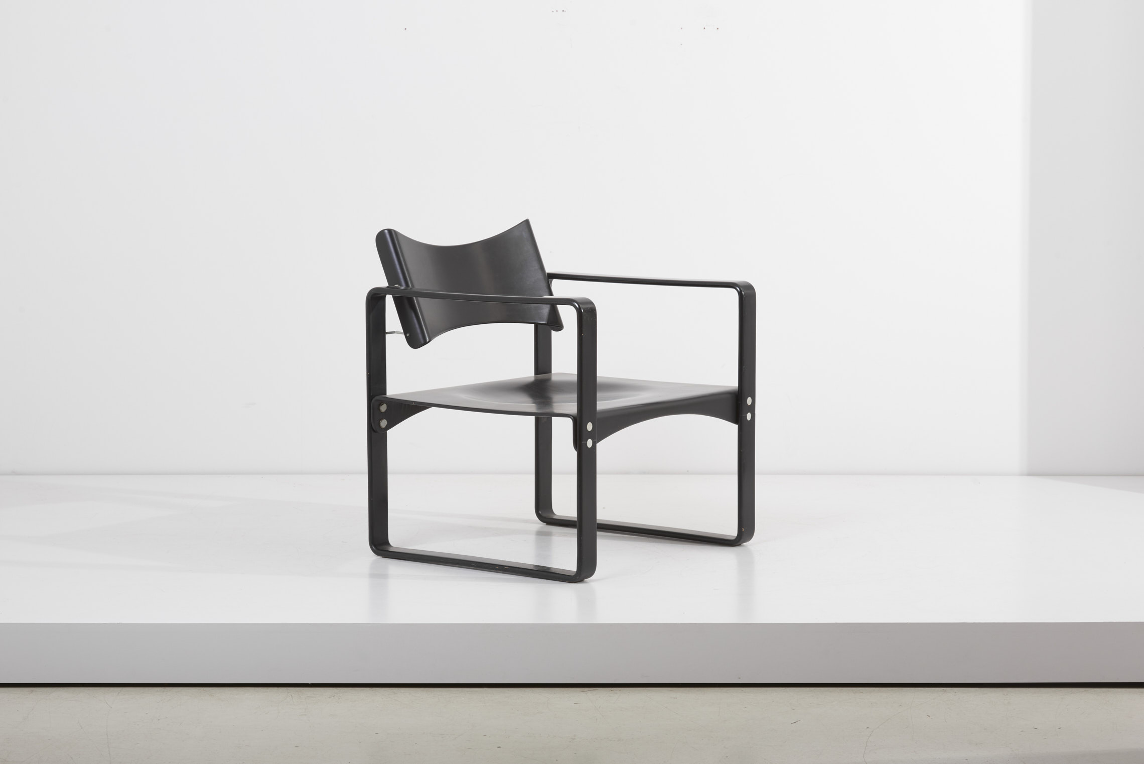 Armchair model no. 271F, designed 1965 by Verner Panton and manufactured by Thonet in Germany. Made of black lacquered wood and labeled.