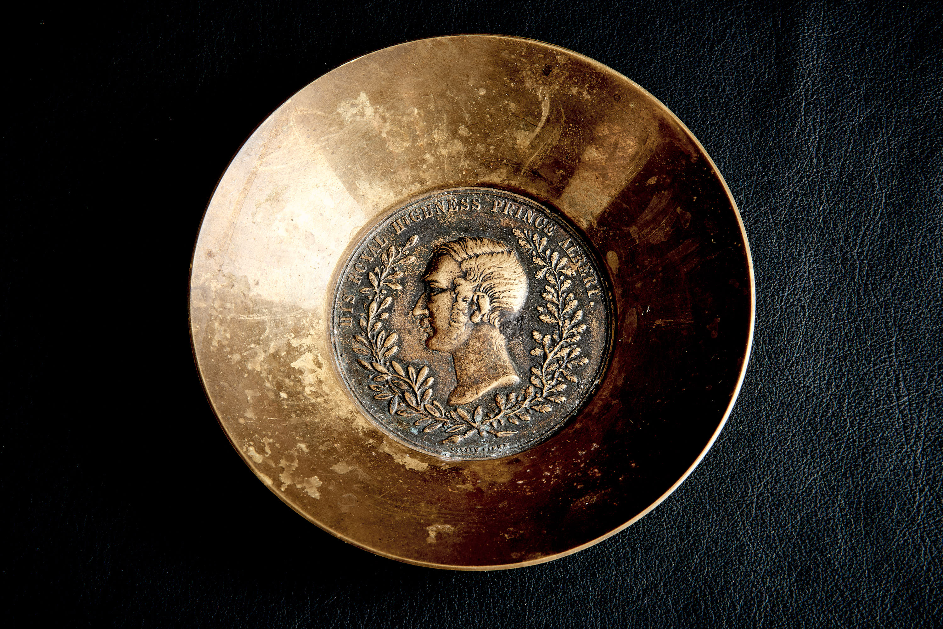 Brass bowl with medallion by Werkstätte Carl Auböck