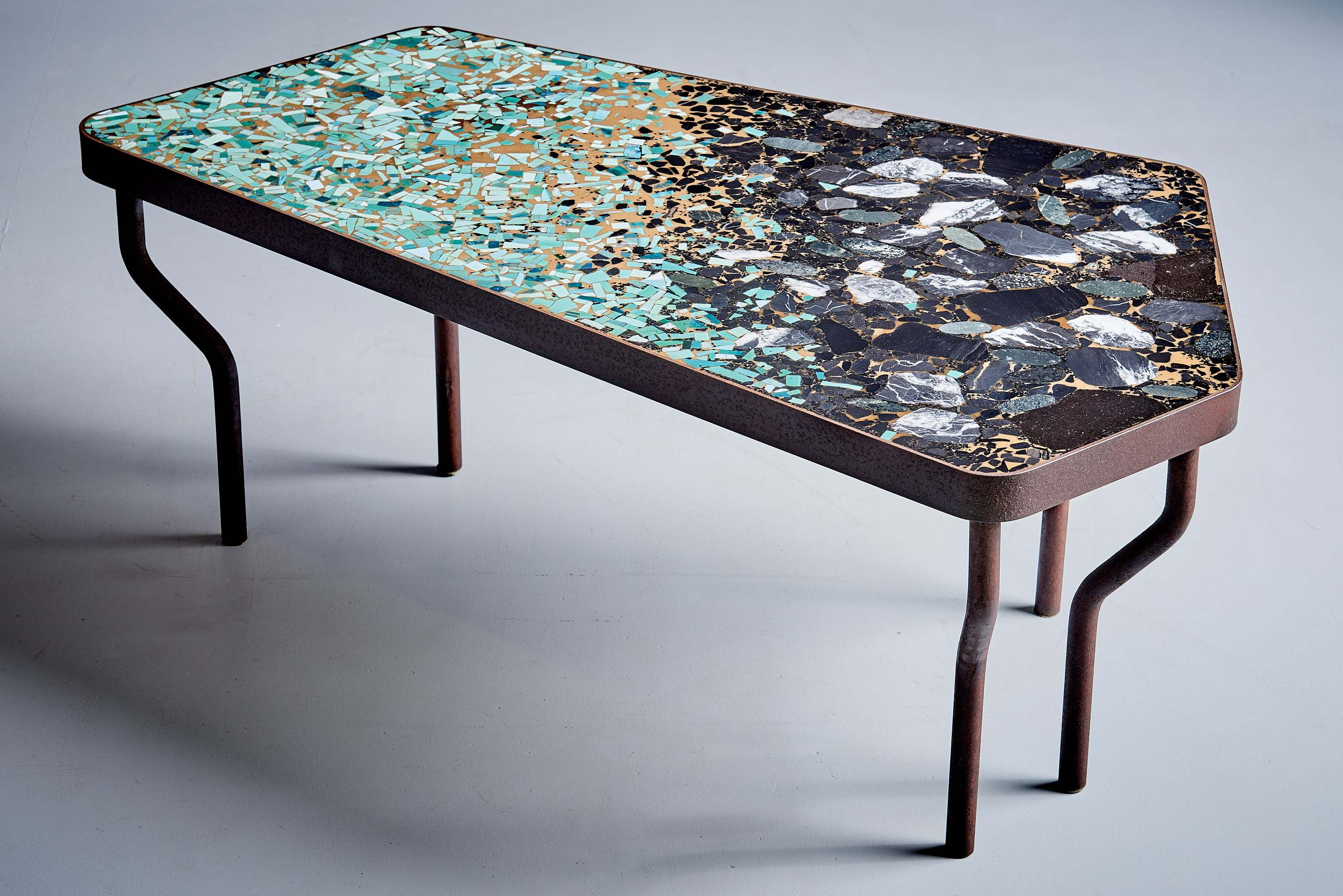 Each item made by Felix Muhrhofer is carefully hand-crafted and a unique, one-of-a-kind product. Felix Muhrhofer has studied Industrial/Interior design in Vienna and Barcelona. He is specialized in terrazzo surfaces for furniture and interiors for 20 years. His materials come from all over the world to create unique works of art.