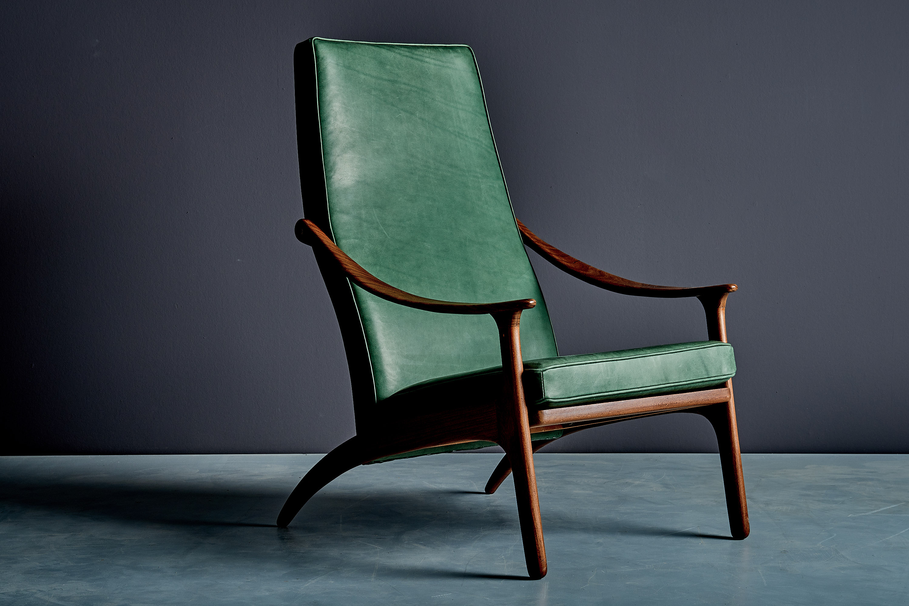 Highback Lounge Chair in Teak and Green Leather by Arne Hovmand-Olsen