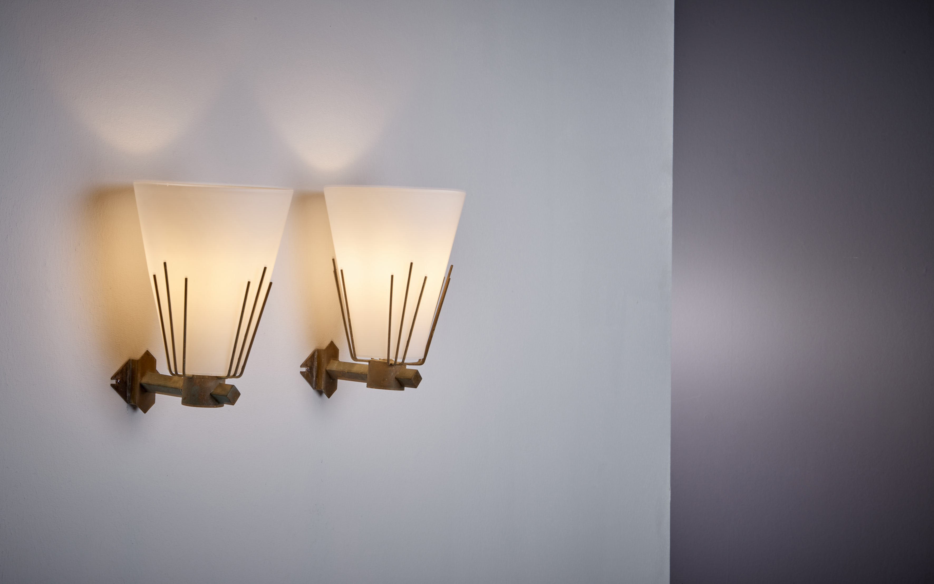 Pair of Wall Lamps in Glass and Brass, Italy - 1950s. Price is per pair