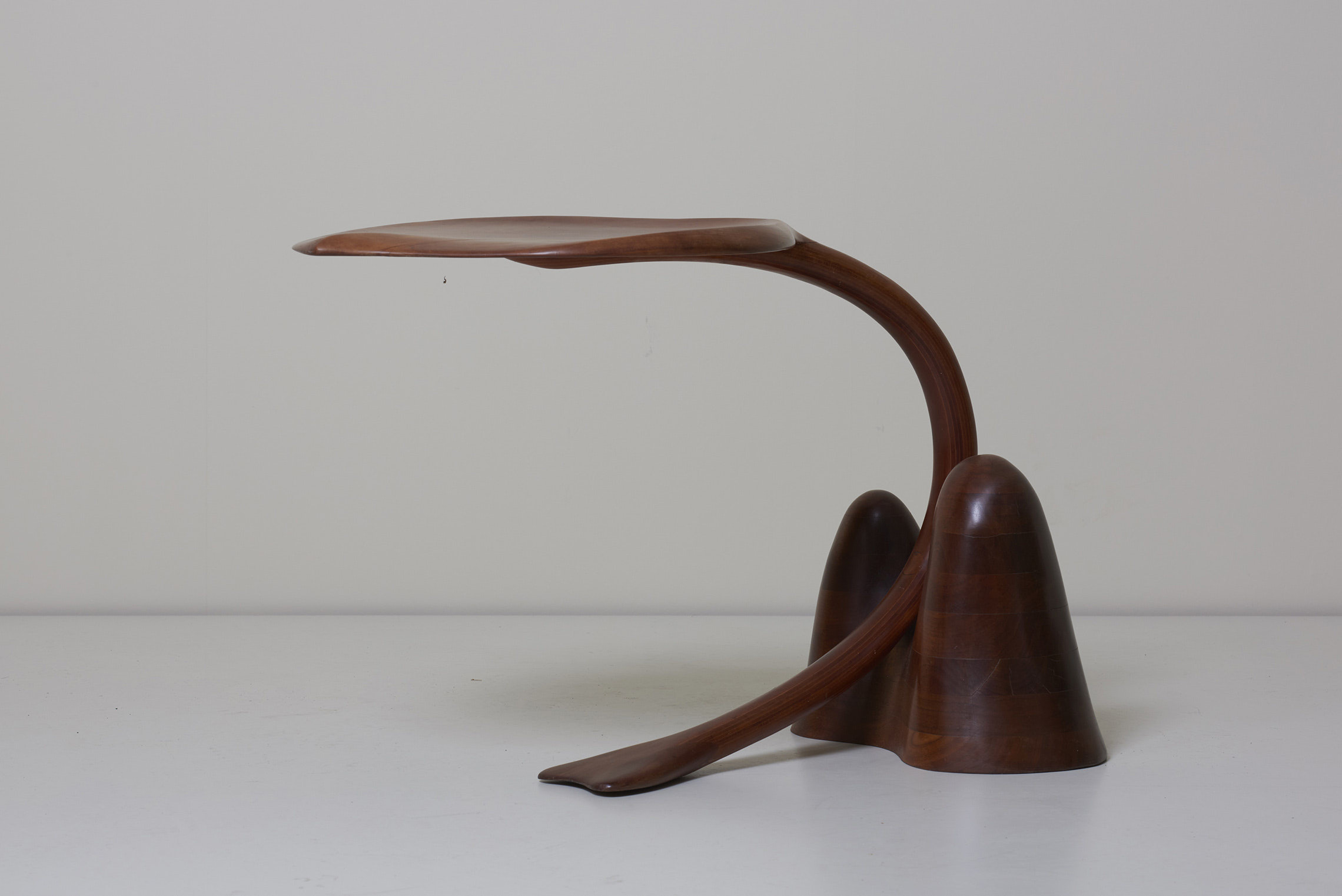 Sculptural 1970s side table. With a heavy base all in solid walnut.