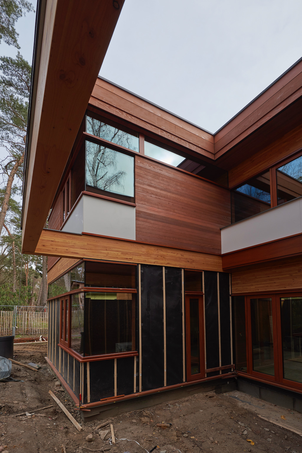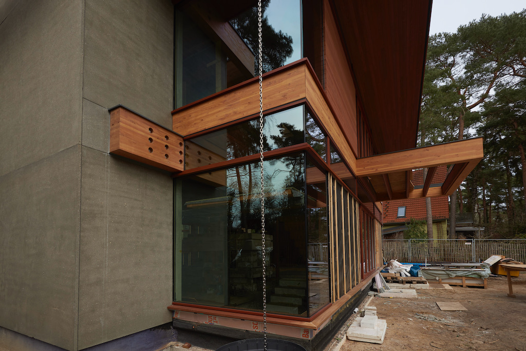 We were very happy to see that the removal of the renovation scaffolding is gone. An ideal way to see a the potential of this strong Kappe work. Especially the overhang of the roof at the front is now very visible and it feels that the house is finally revealed. We just finished the Concrete Boards on the two Pylons that were planned and delivered by the HTWK Leipzig so as the Concrete Plant Oschatz.